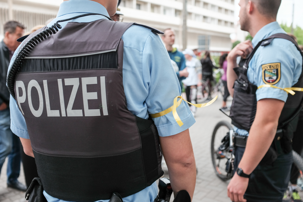 Zu Beginn versammelten sich die Teilnehmer am Stadtpark. Es sollte um 18:30 Uhr starten. Als ich gegen 18:20 Uhr ankam, waren schon viel bereits dort und später kamen noch mehr. Am Ende sollen es über 200 gewesen sein. Die Organisatoren verteilten gelbe Bänder als Erkennungszeichen. Sogar die Polizisten trugen diese. Apropos Polizei – irgendjemand hat es sogar geschafft, dass die Polizei uns „Begleitschutz“ gab und die Straßen sperrten, wenn wir vorbeikamen. Egal wer es war, an dieser Stelle ein Dankeschön, dass es wirklich so kurzfristig geklappt hat.