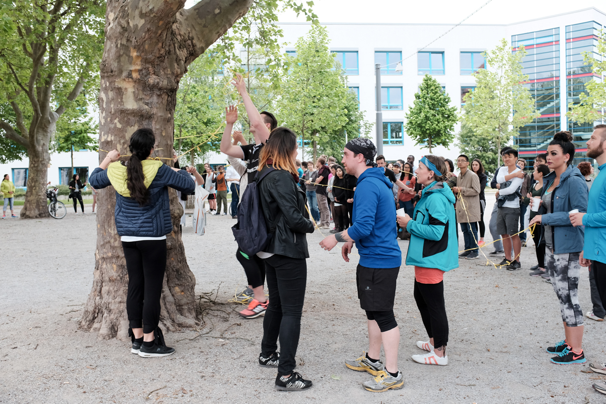 Als das lange Band fertig war, hatte der gebildete Kreis geschätzt einen Durchmesser von ca. 15 Metern! Danach wurde eine Gedenkminute eingelegt und alle senkten Ihre Köpfen und schwiegen. Zu guter Letzt wurde das lange Band des Lebens um die Bäume umwickelt und ich hatte endlich die Zeit mein Bändchen zu entknoten und es am lange Band fest zu binden, dabei kamen mir fast die Tränen. Es war schon ein seltsames Gefühl. Andere taten es ebenso und einer nach dem anderen verließen den Seminarplatz – der Platz des Lebens.