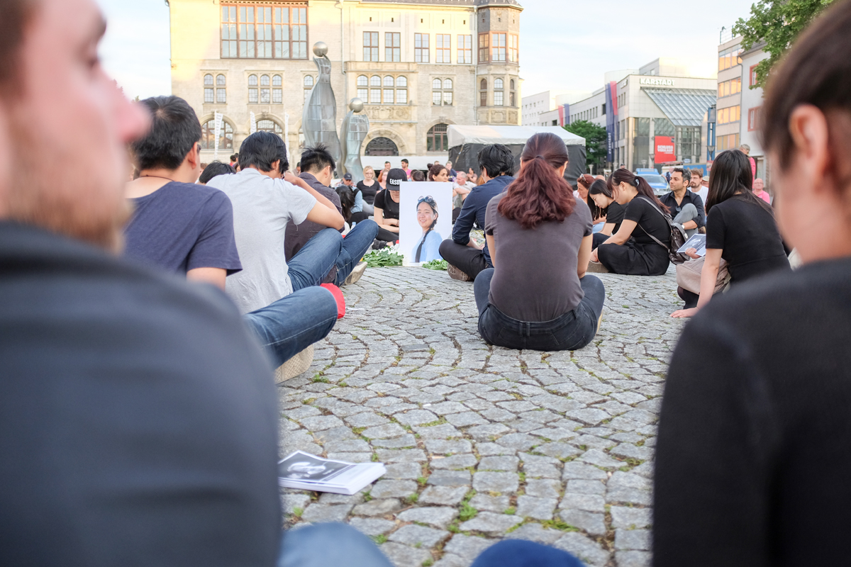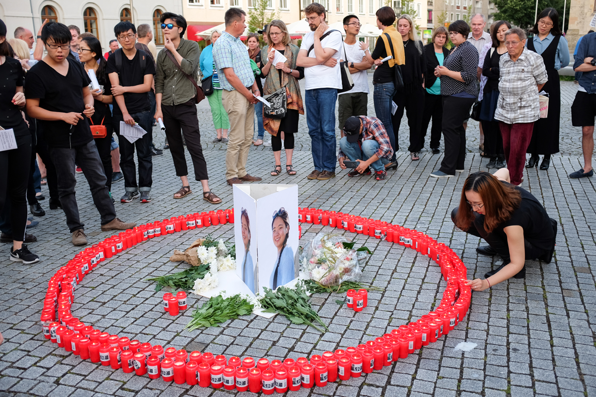Auch sieben Wochen nach dem Mord an Yangjie Li bleibt die Trauer und viele Fragen. Eine weitere Trauerfeier gegen das Vergessen und für Gerechtigkeit.
